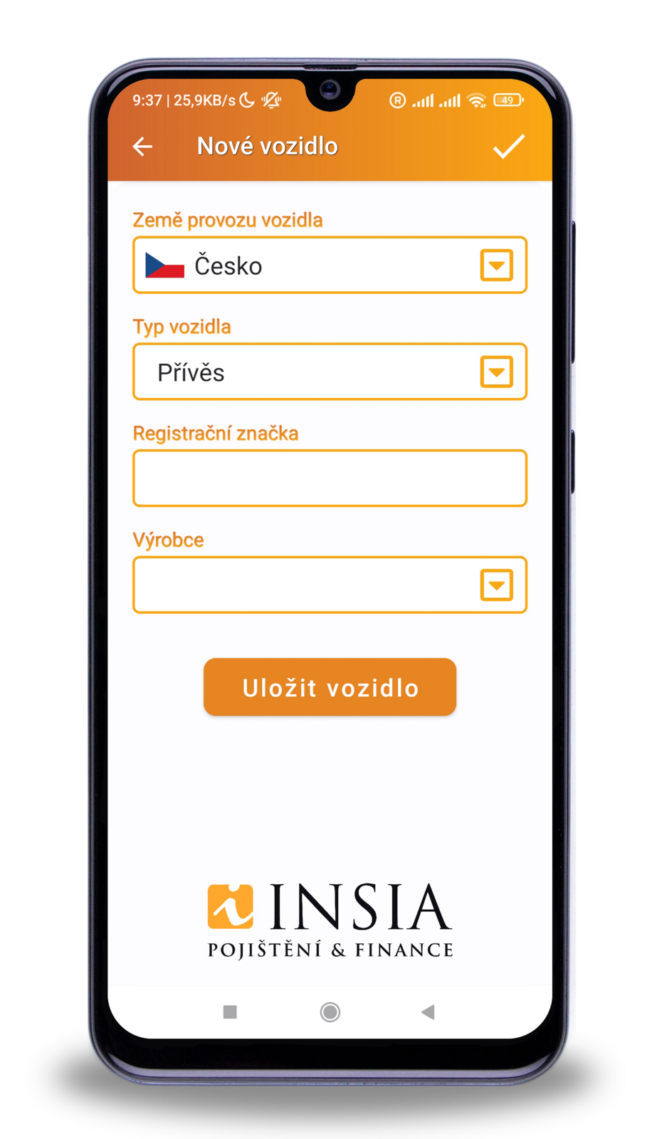 Přes tlačítko plus + na úvodní straně v aplikaci AutoMobil si můžete přidat nové vozidlo.