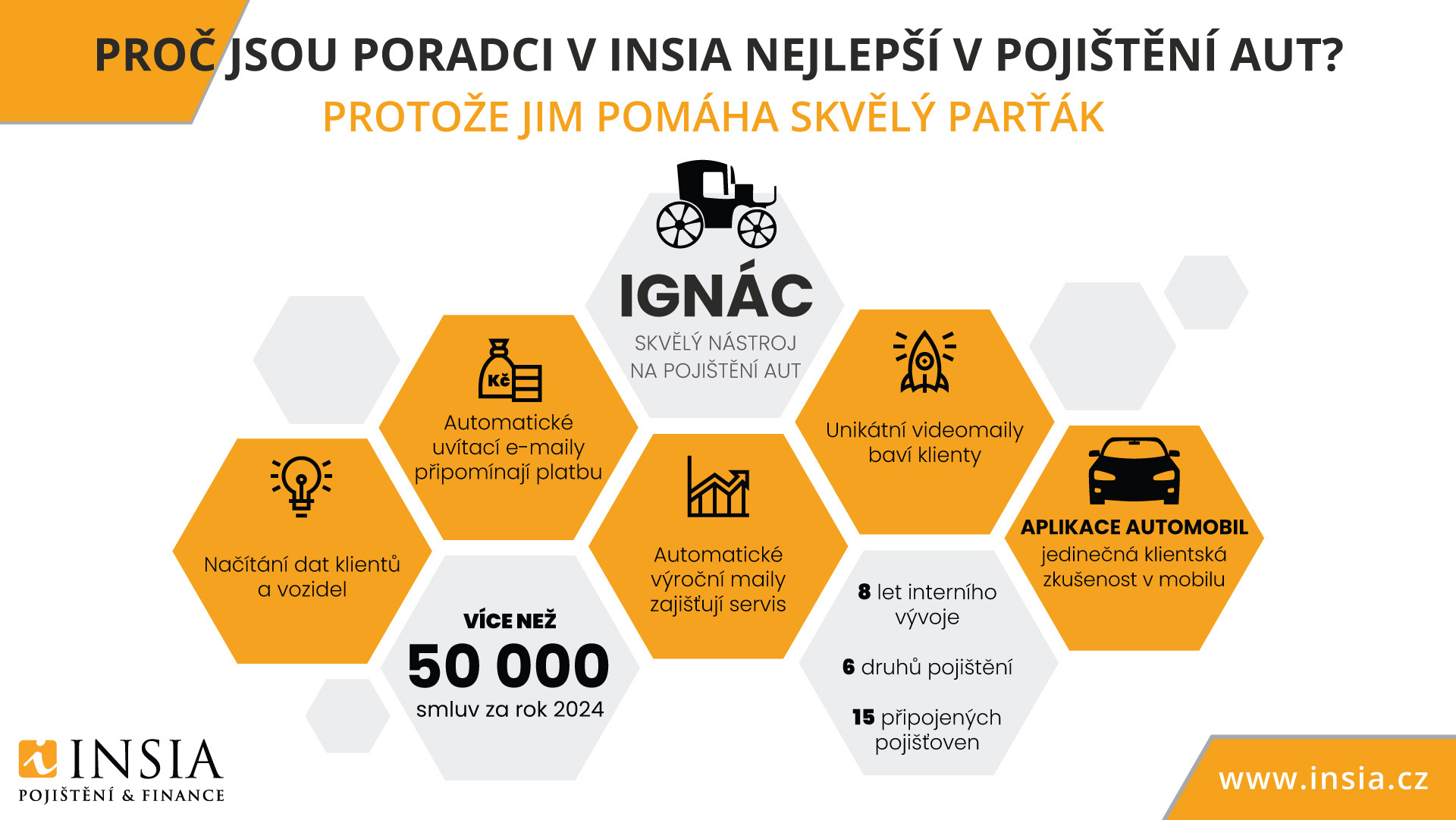 IGNÁC dokázal za rok 2024 sjednat už 50 000 pojistných smluv. V roce 2021 jsme s ním slavili produkci ve výši 150 milionů Kč. Dnes, o tři roky později, jsme dvojnásobní - překonali jsme hranici 300 milionů Kč produkce, což jen potvrzuje, jaký význam má tento nástroj pro síť INSIA a její klienty.