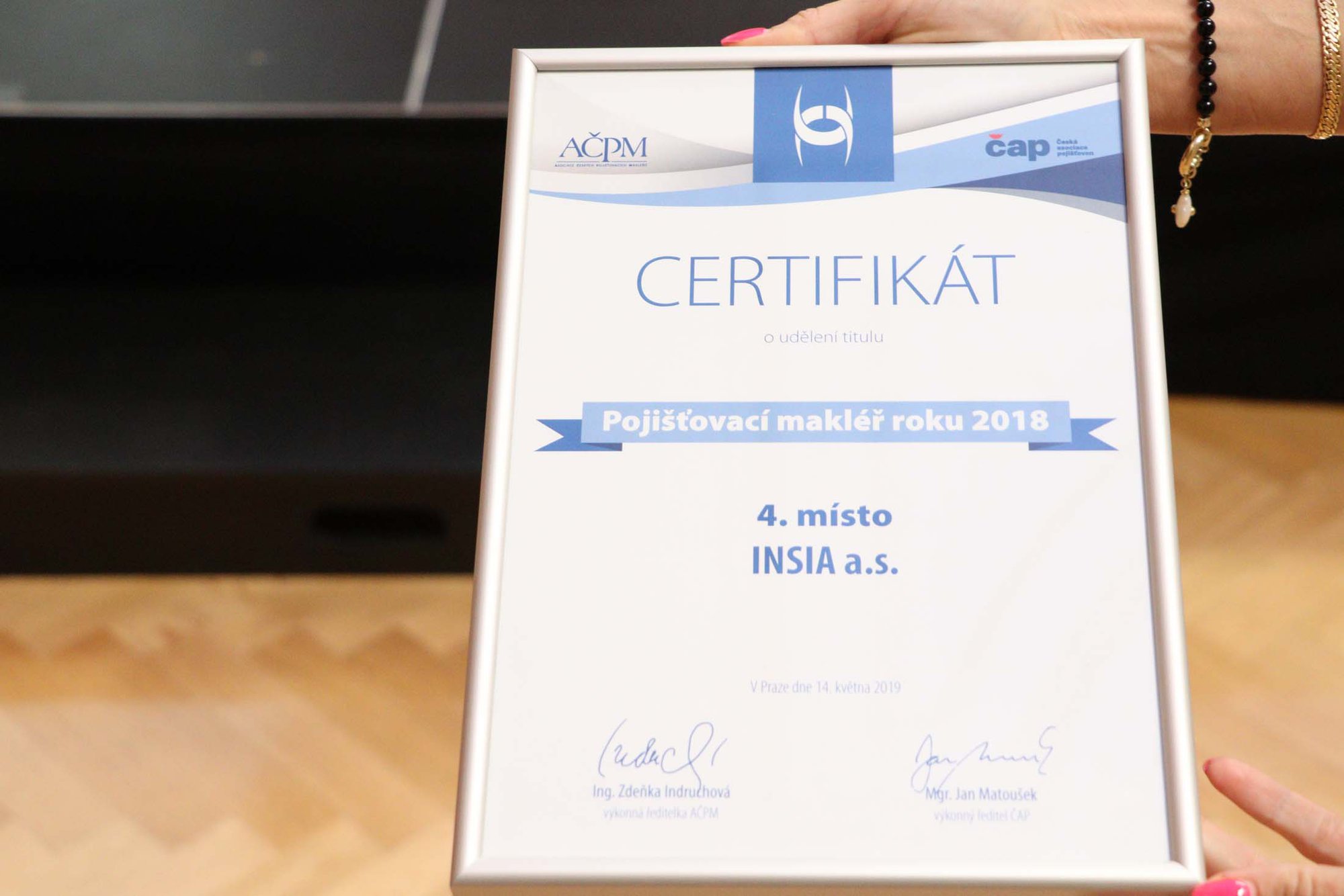 Společnost INSIA, jejíž meziroční tržby pravidelně rok od roku rostou, si připisuje další cenný úspěch. V rámci 19. ročníku prestižní odborné ankety Pojišťovna roku získala 4. místo v ocenění Pojišťovací makléř roku.