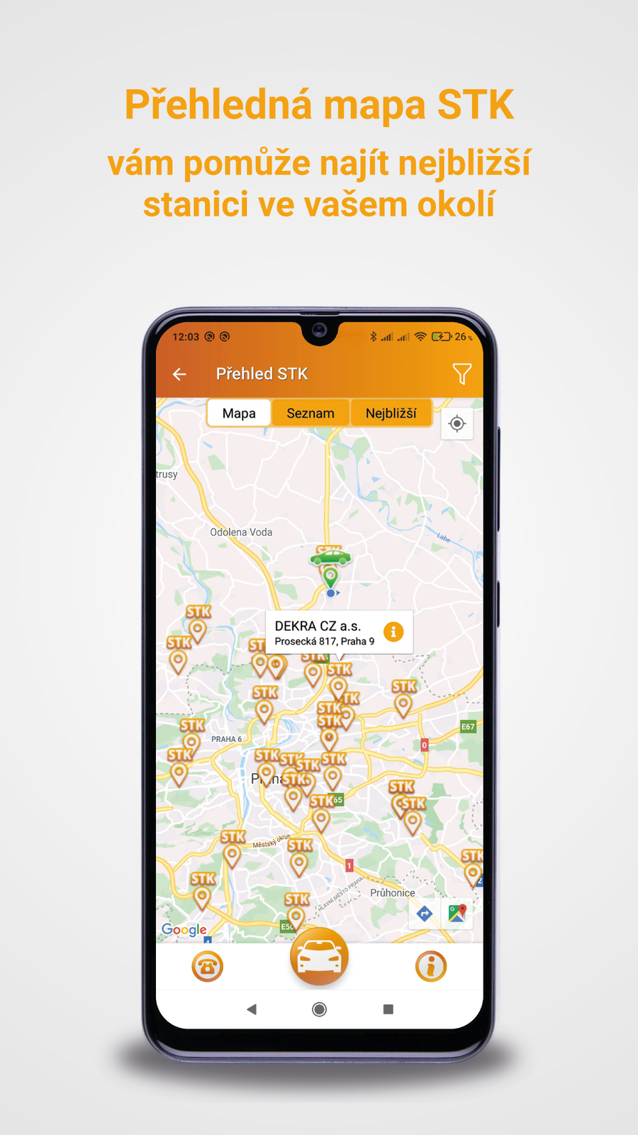 Upozornila vás notifikace na vypršení platnosti STK? V integrované mapě si ihned dle vaší polohy vyhledáte nejbližší stanici a ověříte její dostupnost.