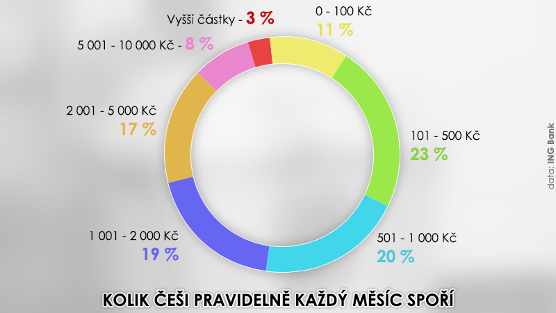 Úspory si tvoří většina domácností. Nejvíce lidí si měsíčně odkládá částky od 100 do 500 korun. Podívejte se na grafy z průzkumu ING Bank, abyste měli lepší představu, kolik peněz a kam si lidé měsíčně odkládají.