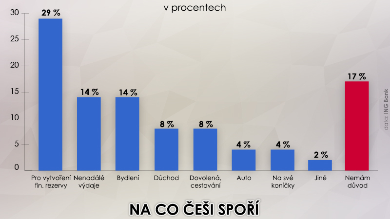 Lidé spoří hlavně proto, aby měli rezervu na horší časy. Dalším důvodem jsou neočekávané výdaje