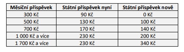 Maximální měsíční příspěvek od státu se zvýší z 230 Kč na 340 Kč. Nově bude činit 20 % měsíčního vkladu klienta. Na maximální státní příspěvek 340 Kč tak dosáhnete, pokud si budete spořit měsíčně 1 700 Kč a více.