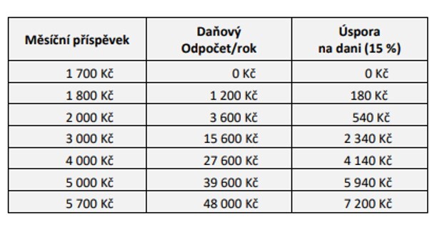 Od základu daně si nově můžete odečíst příspěvky v celkové výši 48 000 Kč, slevu lze uplatnit až do výše 48 000 Kč na jeden nebo více daňově podporovaných produktů na stáří. Od 1. 7. 2024 budou daňově zvýhodněné úložky vlastního příspěvku nad 1 700 Kč / měs., do konce června 2024 pro vlastní příspěvek nad 1 000 Kč / měs.